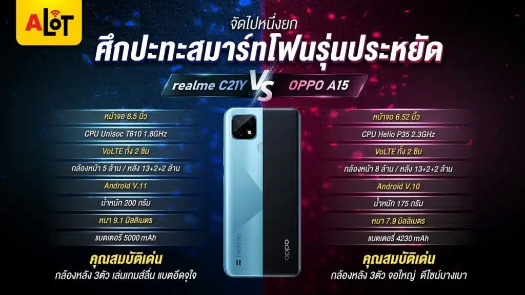 ในระหว่าง แบรนด์ Realme C21Y 💛 VS OPPO A15 🤍