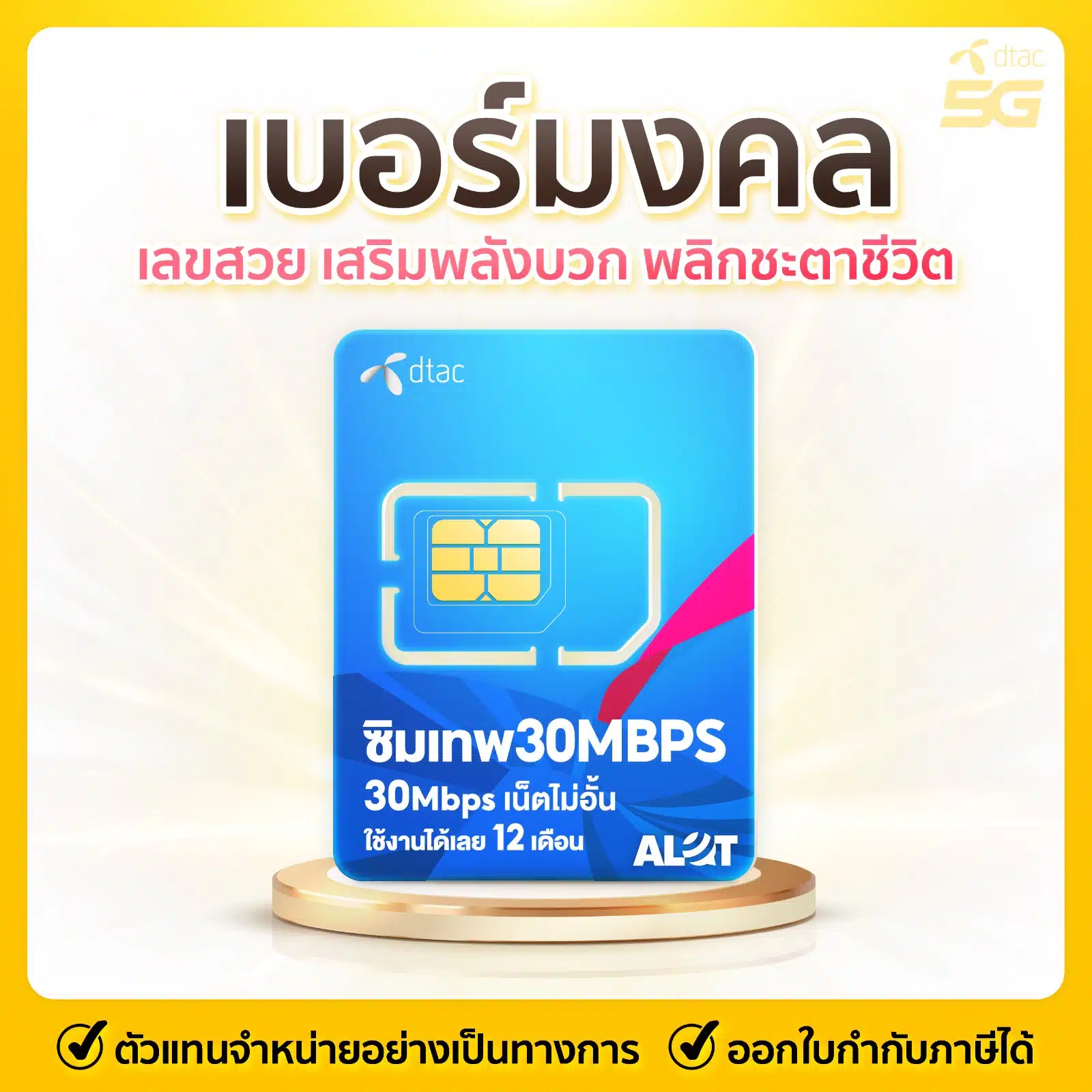 คุณสมบัติ ซิมเทพ DTAC 30Mbps เพิ่มให้จาก 20Mbps เลือกเบอร์ได้