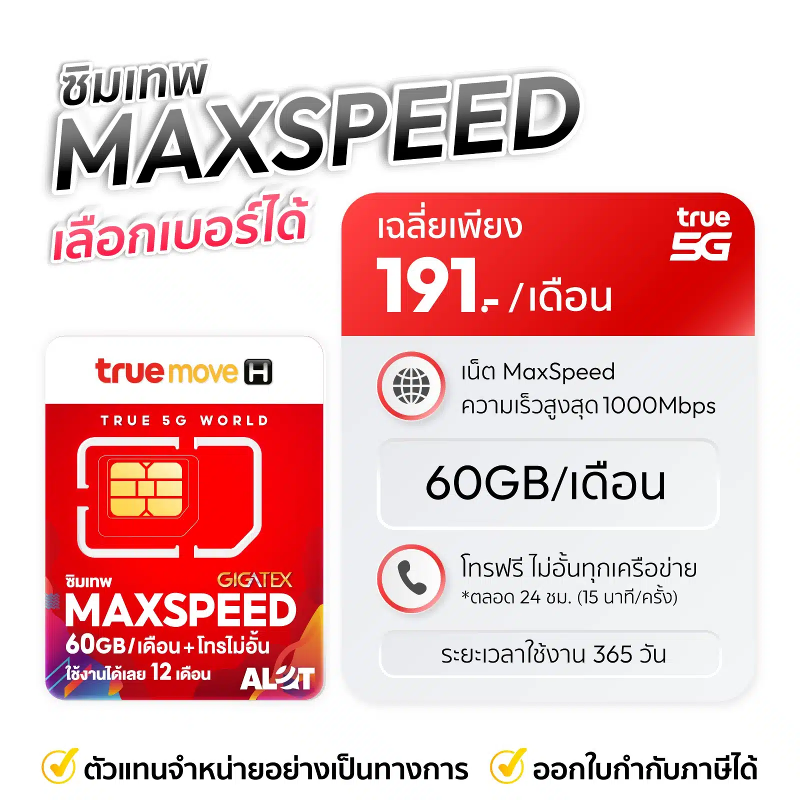 คุณสมบัติ ซิมเทพ Maxspeed 60GB เลือกเบอร์ได้