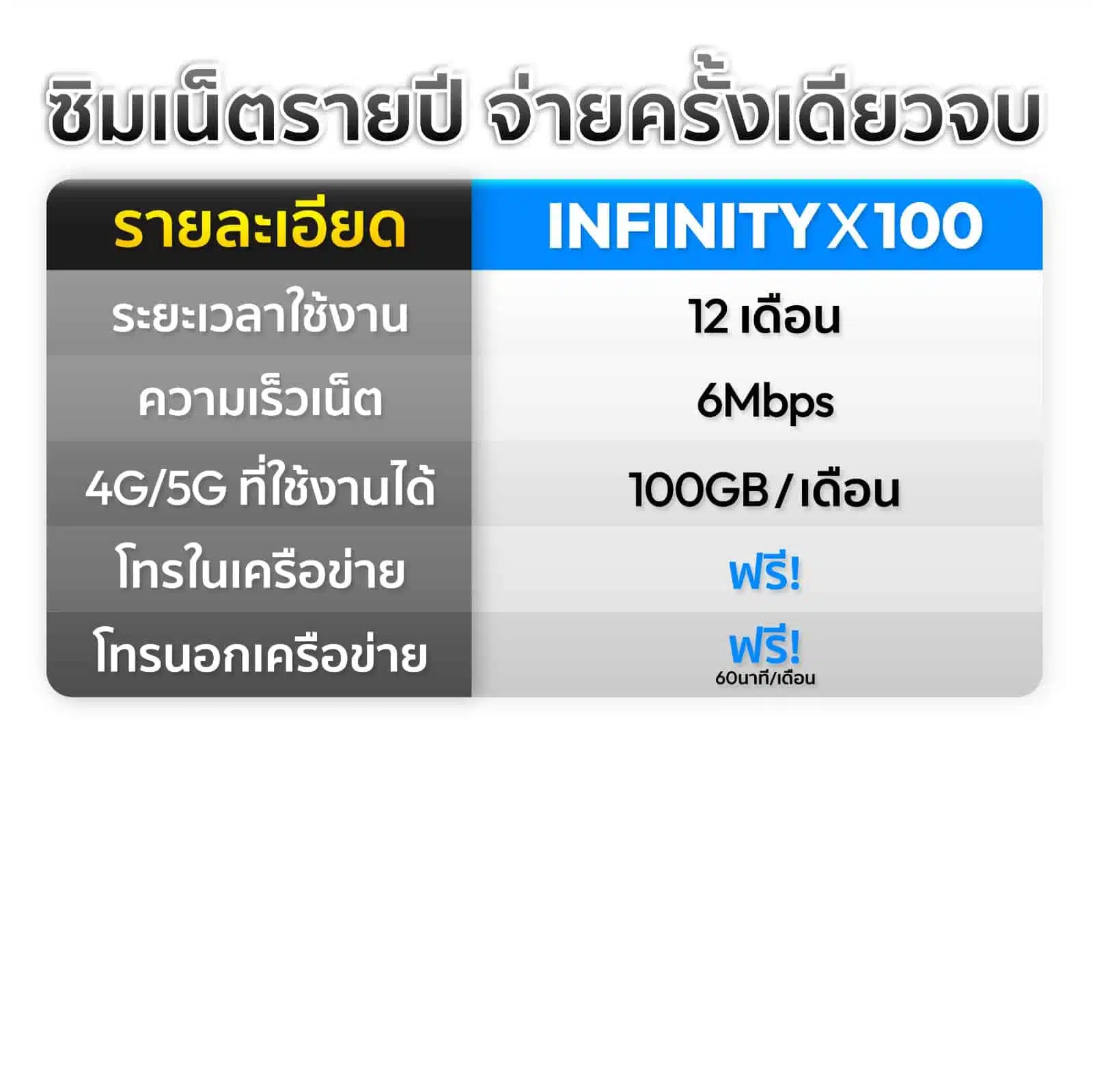คุณสมบัติ ซิมเทพ DTAC Infinity X100